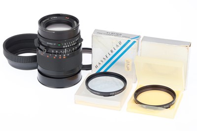 black, serial number RU1412636, VG, shutter and advance mechanism work, with roll film back and dark slide, with a Planar f/2.8 80mm lens, barrel G, ... read more