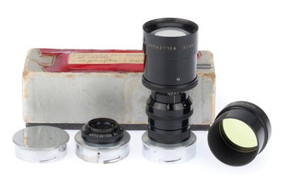 comprising a Color-Telinear f/3.4 90mm, barrel G, optics VG, and a Color-Telinear f/4 90mm, barrel G, optics G with very light haze, both in plastic ... read more
